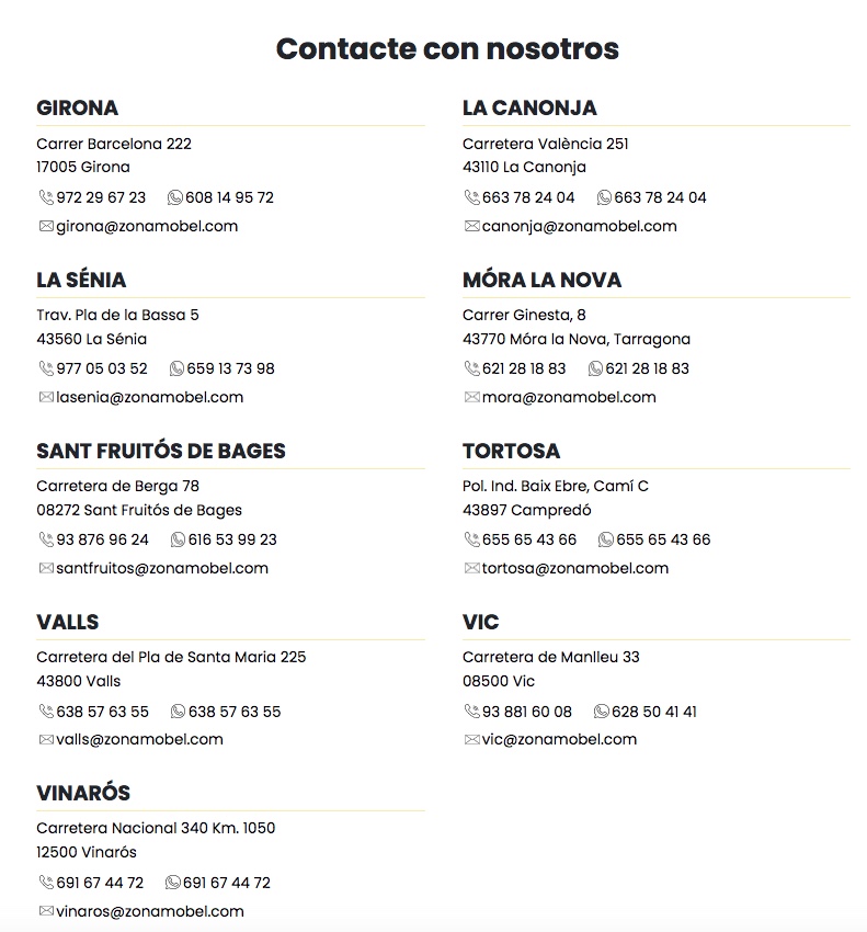 A ZONAMOBEL hi podeu trobar tota mena de mobles. Els seus mobles s’adapten a qualsevol espai: disposen d’una àmplia varietat de mobles en estoc. Pots completar el teu disseny amb mobles auxiliars de menjador com a vitrines, aparadors i mobles de TV per a deixar l’estada completament al teu gust.